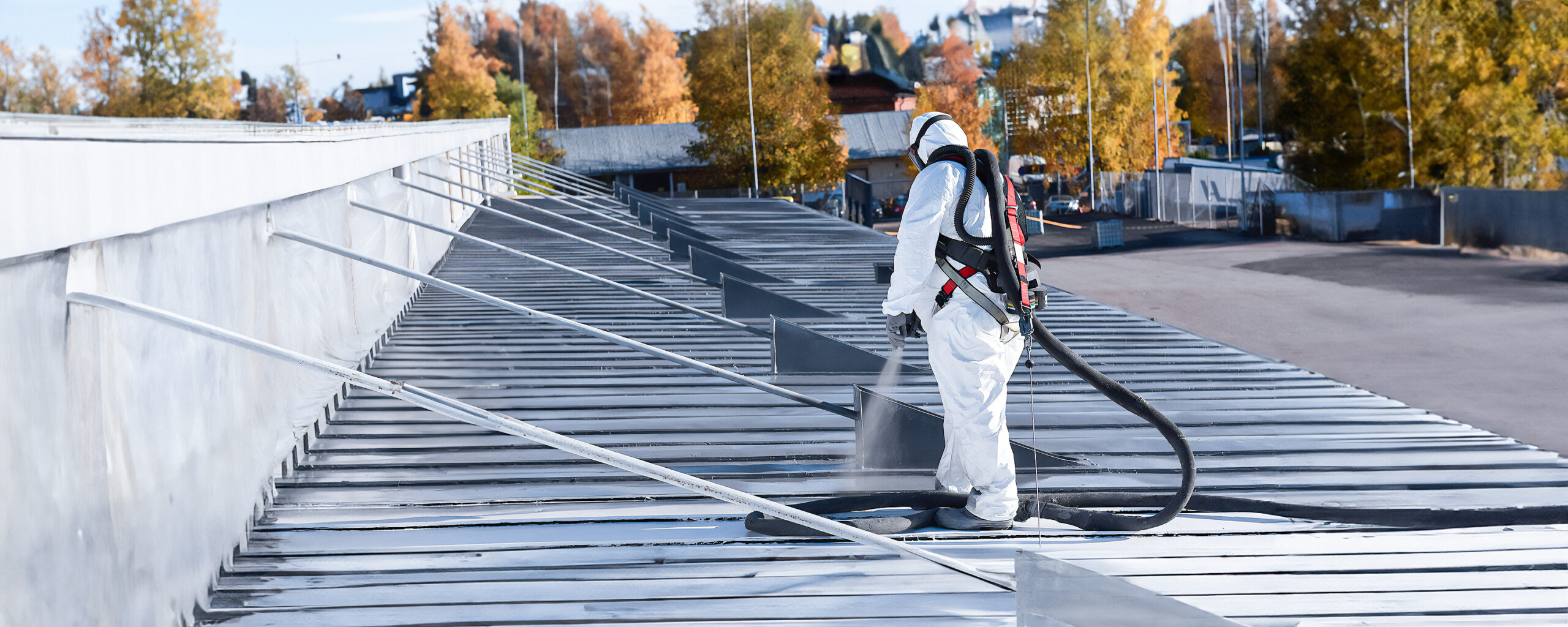 Innovación y Durabilidad: Nuestro sistema de recubrimiento elástico y duradero mediante aspersión de poliurea crea una capa protectora contra la humedad y las filtraciones, ideal para grandes superficies industriales y comerciales.